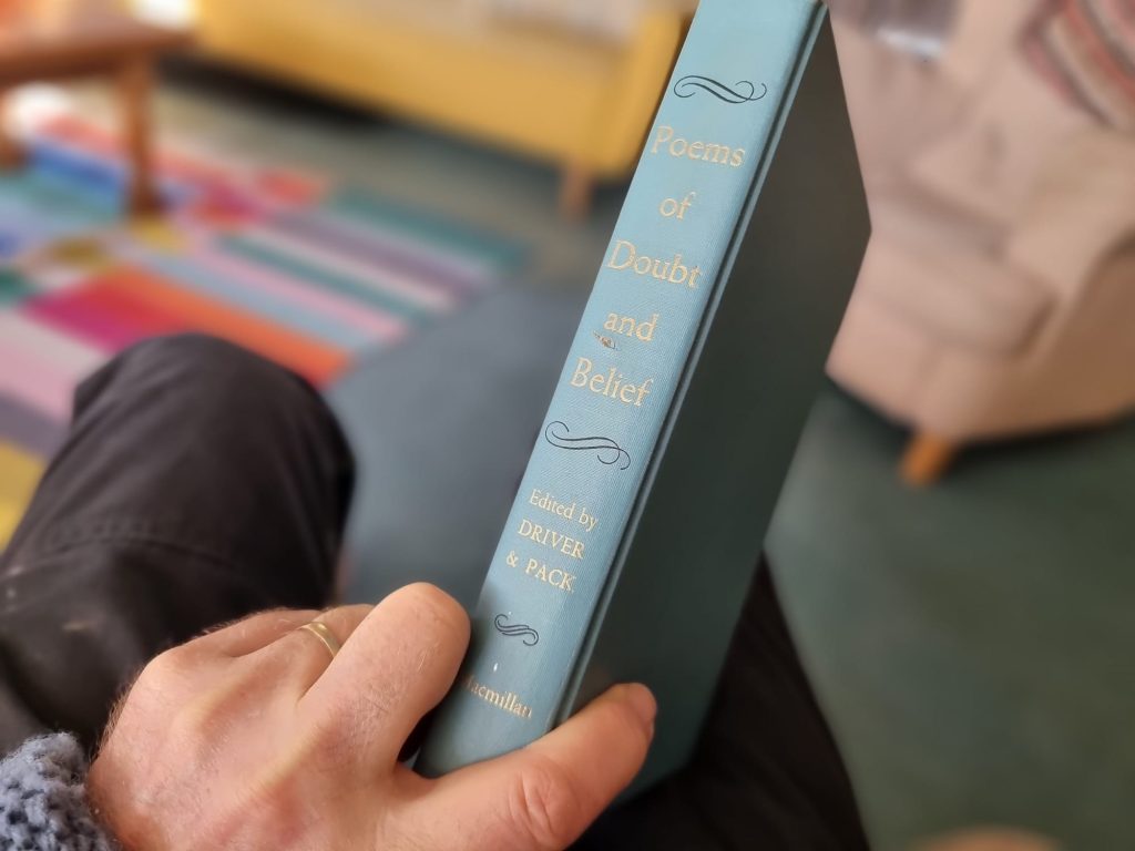 I picked up this book from a pile that were free, otherwise unwanted. I think it was part of a legacy from a previous generation of poety lovers who had passed it to a poetry club I help run. The title of the book immediately reminded me of a chapter in the Proost anthology Learning to Love, which we called faith/doubt. I wondered if someone might pick up that book