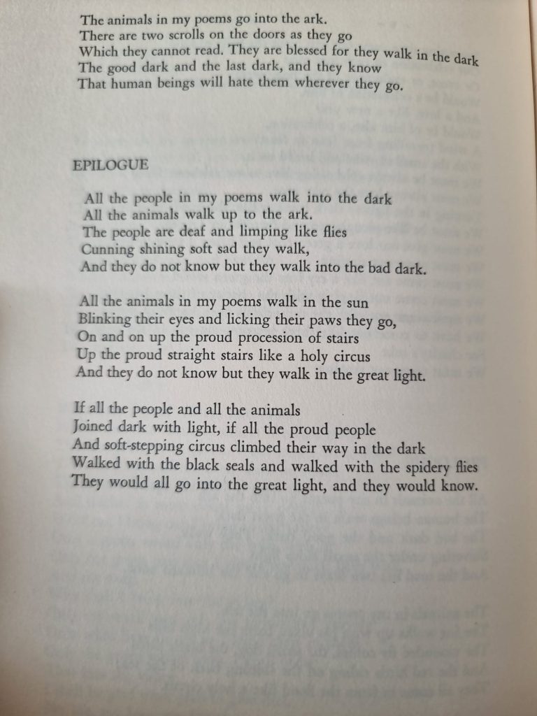 Here is one random section from poem from the book called ‘They come out singing’ by the poet Jon Silkin. I loved it because it seemed to be exploring a path that I would recognise from my own journey into Celtic mysticism. But then again, that might be how I am reading it. Such is poetry.